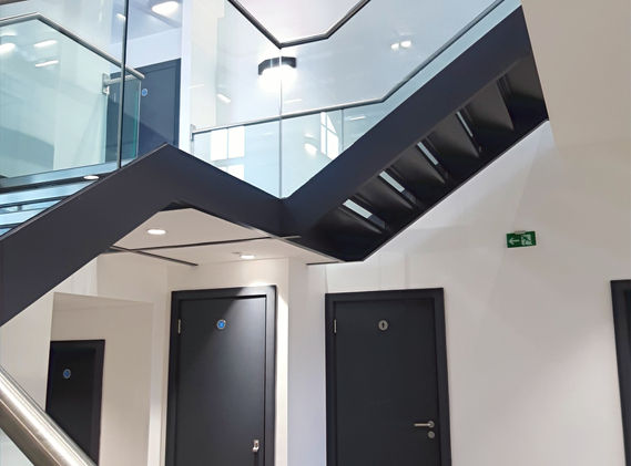 Taking out the 1st and 2nd Floors to create a larger stairwell with new steel and glass staircase. Partitions were removed and structural openings formed with the use of steel beams to create an open plan area on each floor.
